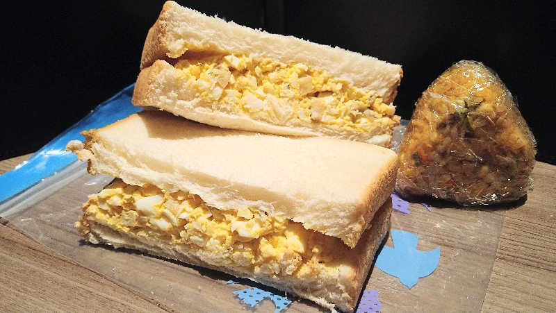 カッチカチの冷凍食パンに玉子サラダを挟み、そのまま職場に持って行きながら自然解凍し職場のおやつとして食べました。