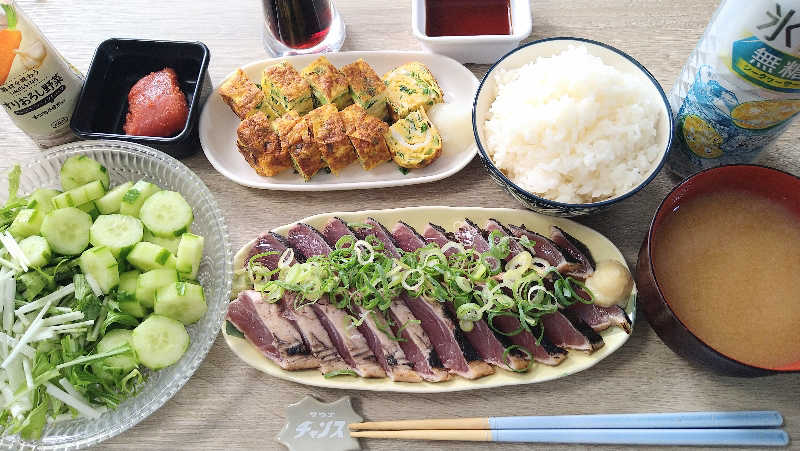 金木犀の時期ですね〜❗️ 香りがすると、ついその方向に誘われますね〜😄 それにしても、自炊でキュウリの皮しっかり剥くあたり見習うべきですね❗️ カツオのたたきはやっぱりポン酢ですかね⁉️美味しそう😋