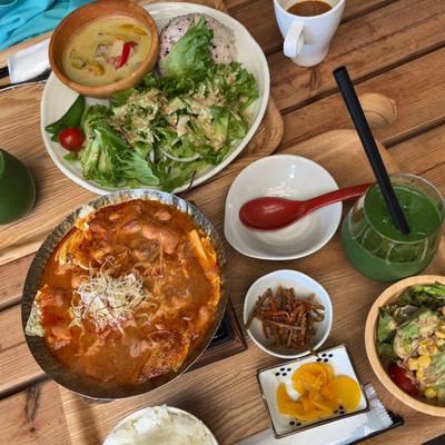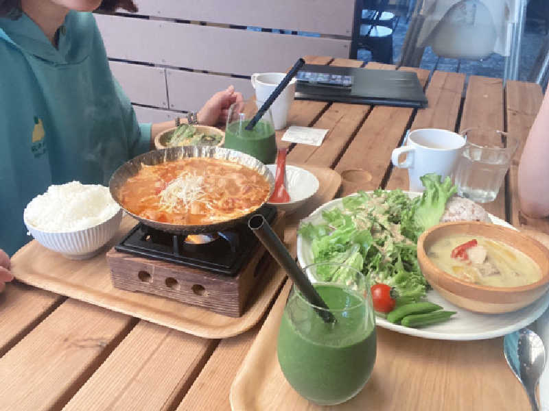 セットドリンクがケール🥬のスムージーにできるのが感動‼︎‼︎たくさん汗をかいてすぐに野菜の美味しいスムージーを飲む事ができて幸せすぎました❣️