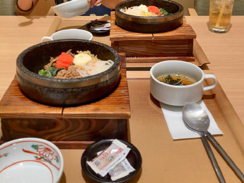 食事は安定のビビンバ。