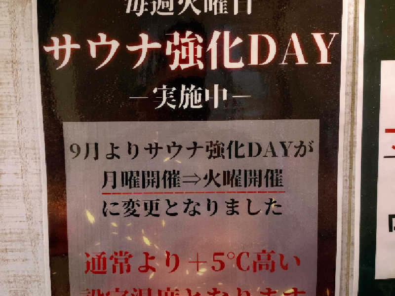 久し振りに利用したら、水曜サ活ということで、第二と第四水曜日は高温サウナ(ドライサウナ)が+5℃というサービスが追加されていた。