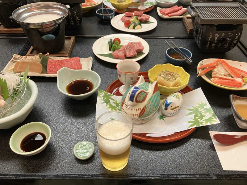 温泉内のラジウム蒸気風呂に3セット。 水風呂はなく、代わりにぬる湯が気持ちいい。 ラジウム温泉の霧をずっと浴びておるので、体の芯からあったまり、汗が噴き出てきた。 朝はやってないないので、夕食後、再度入ります。