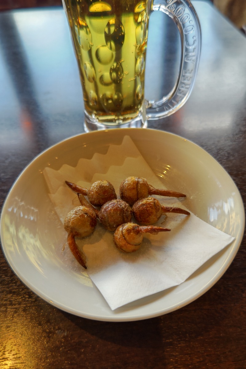 〆はいつもの樽詰ノンアルコールビールとくわいの素揚げ!パドロンからつい浮気をしてしまいました!