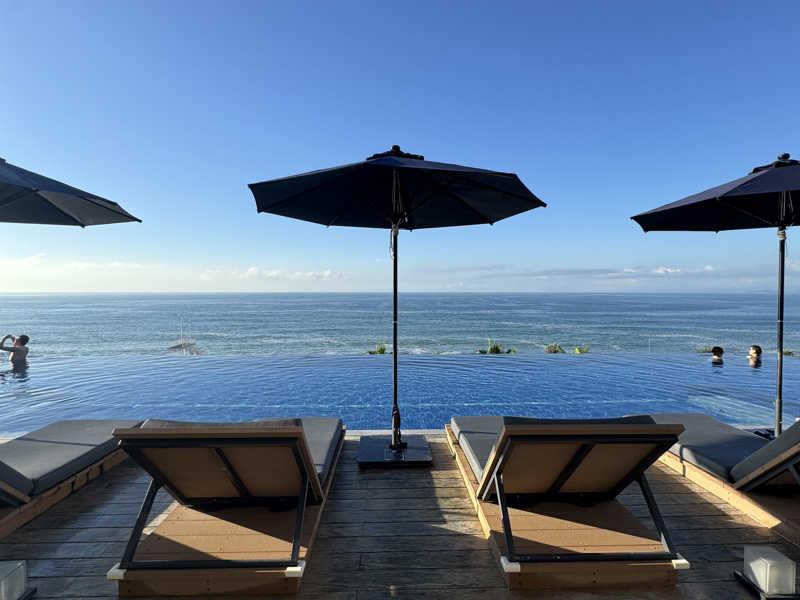 バーラウンジのような空間を抜け、子供とともにインフィニティプールへ。