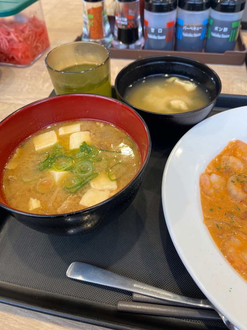 たっぷり海老のニューバーグソースにも豚汁を合わせるのであった
