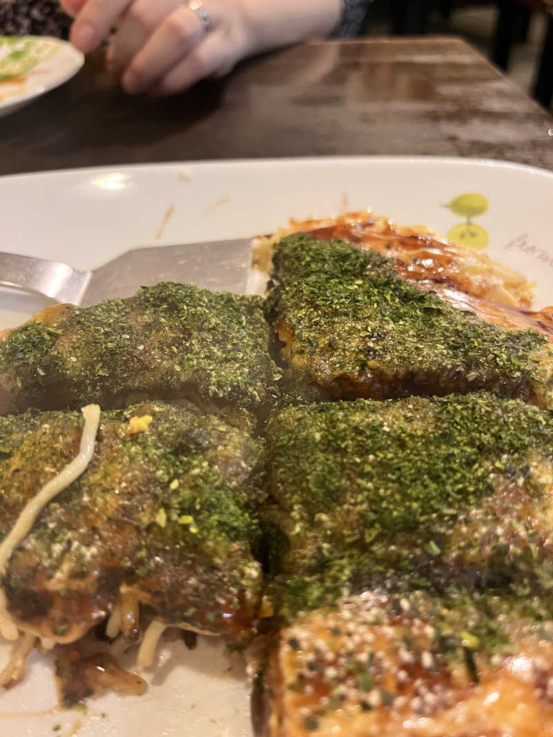 ここのお好み焼きは本場さながらで、パリパリからのムチっとした食感が楽しめます。
