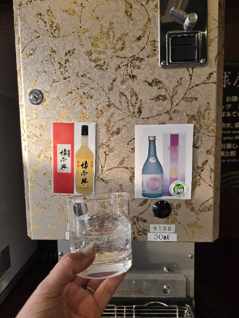 わたしも3回目ではじめて100円って気付きました。 あるなぁとは思っていたのですが、宿泊者限定のウェルカムドリンクだとばかり思っていて。 大喜びで2杯♪ 一杯が、わずか30mlですから、割っても一杯分にもなりませんから〜😊 それくらいが、湯上がりにはよかったです。