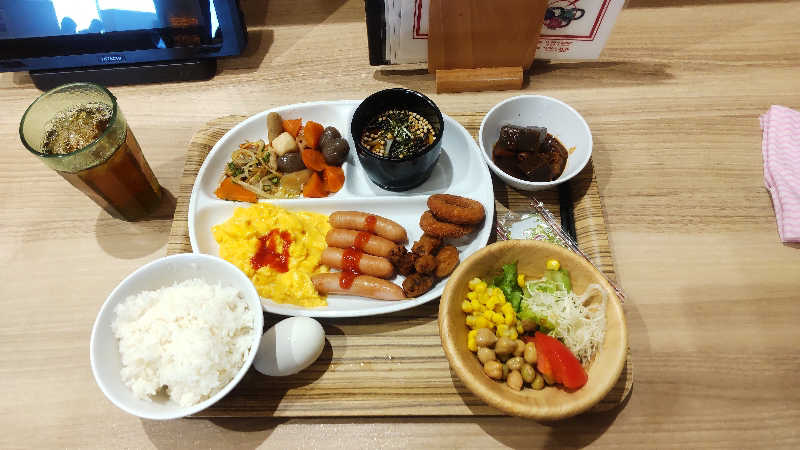 とりあえず…ついて早々館内着に着替えて朝飯!なんか宿泊してた八狐さんと入れ違いだったみたいw
