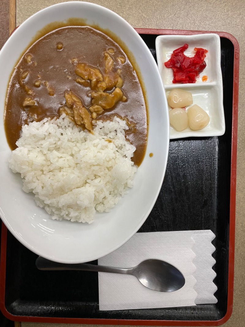 サウナ飯は館内にてチキンカレーをチョイス😎The食堂のカレーでおいしくいただきました😋