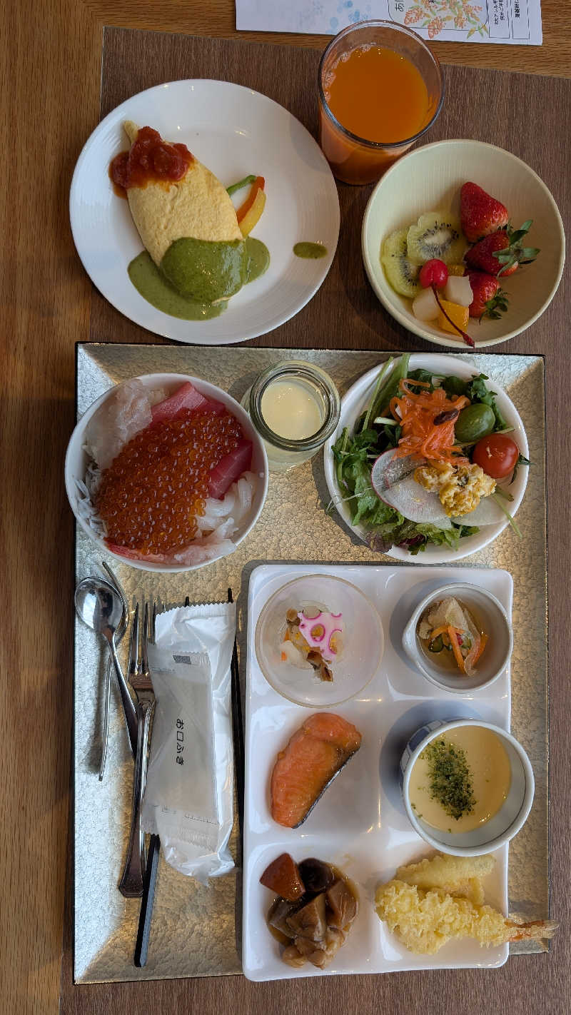 女湯はスチームサウナ、水風呂なし(;_;) 男湯はドライサウナだが、水風呂なし… 女湯の外気浴はサマーベッドタイプのイスがひとつとベンチがひとつのみでしたが、ひとり占め出来ちゃいました。 ベランダからの眺めでリゾート感を満喫 何と言っても、サウナのあとの朝食バイキング最高でした👍