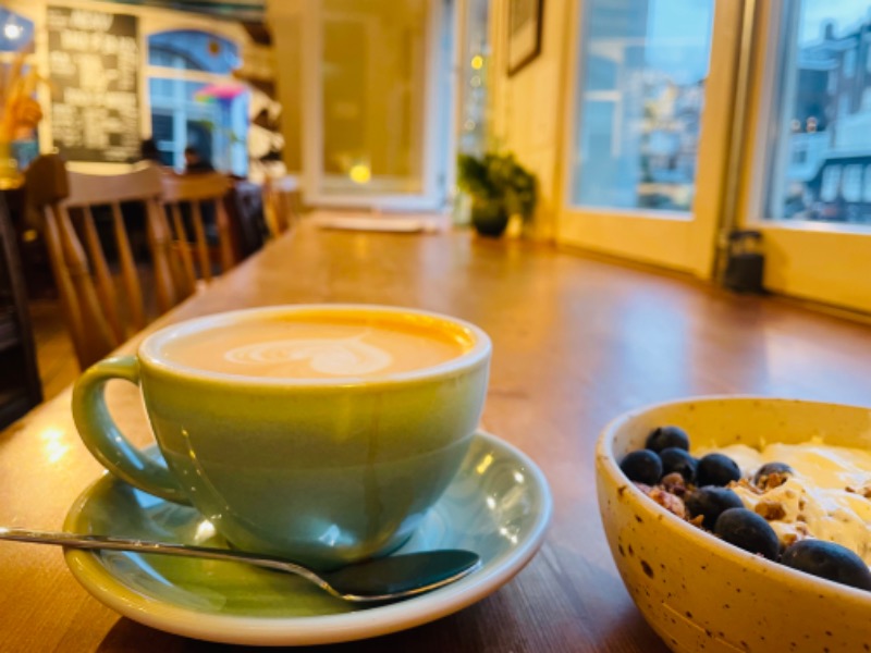 カフェラテ、グラノーラ