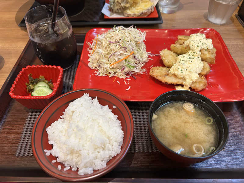 ヘロヘロで一旦休憩でご飯、、、フードコートみたいな所の内側の特別エリアみたいなところでチキン南蛮食べたけど、、、まぁまぁかな🤣