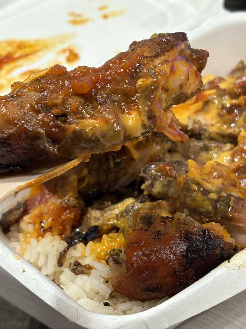 外気浴で香ってたジャークチキンを買って