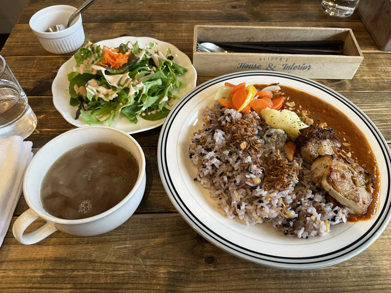 チキン美味しいのはもちろん本格的なスパイカレーも旨い😋スープは玉ねぎの甘味が出てすごく旨い😋オススメ