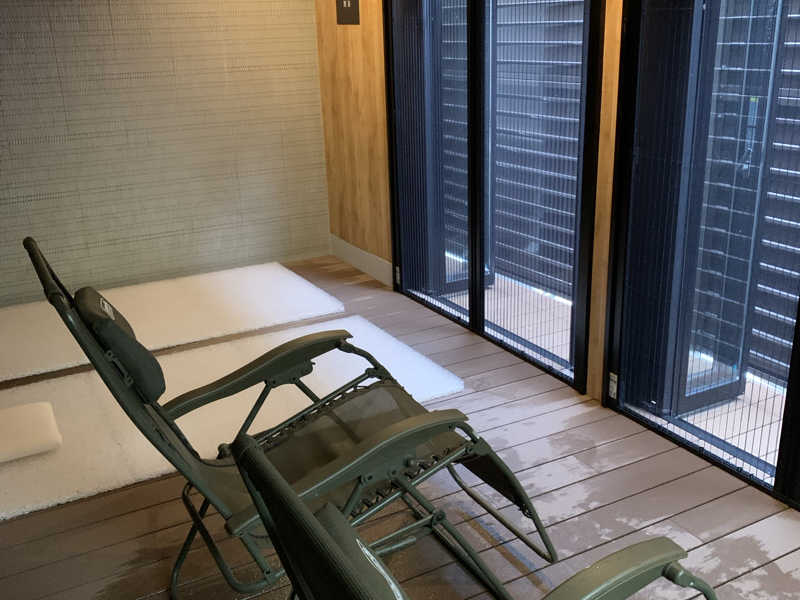 水風呂は14度、深めで広く極上です。文句無しの水風呂に反して外気浴は狭い!2脚のColemanでほぼ占領状態でした。