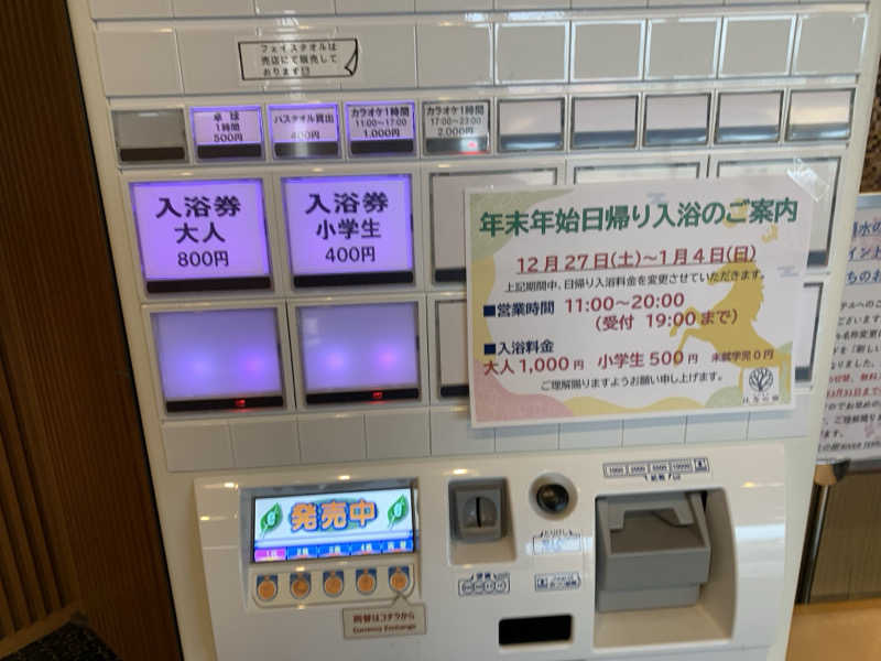 立ち寄り湯客が多いのでしょうか?入浴の券売機はホテル受付のすぐ横にあります。