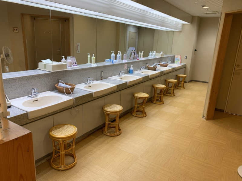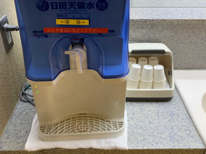 また、洗面台には天領水が設置してあり、飲み放題ですが、冷やしてくれてたら最高なんだけどなぁ。