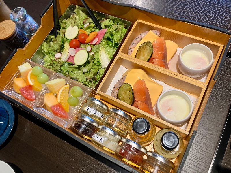 約1年ぶりの再訪♨️ 今回は朝食だけのプランで、夕食は持ち込みで🍽️ 量がこちらで調整出来るのでこれ良いかも。 好きなタイミングでバレルサウナ、夕食、花しぶき本館の大浴場に行けるのはとても良かった🧖