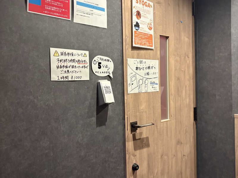 特段予約制では無いものの、男性1部屋、女性1部屋で、前の人が使っていると出てくるまで入れないシステム。入口は使用中と空室の札をひっくり返して、1人1時間以内のサ活スタート。