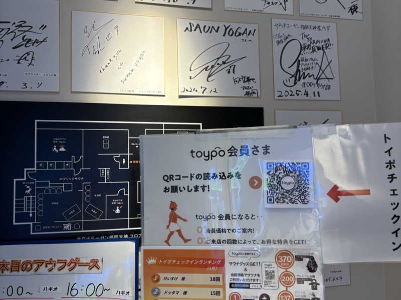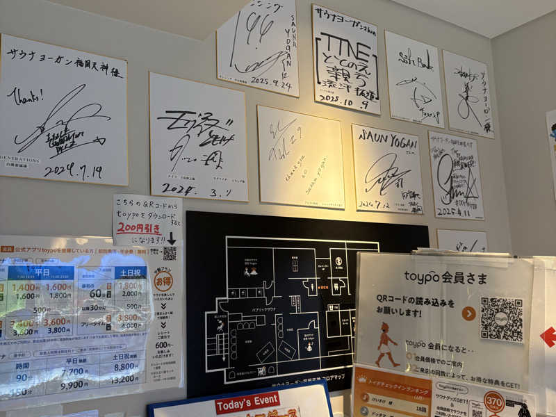 入口に有名な熱波師さんのサインが沢山飾ってあってテンション☝️☝️Ariさんときよさうなさんのサインも発見👀