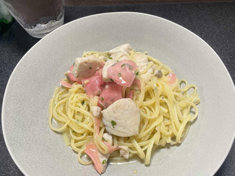 白身魚とガリのパスタとぺぺたまの2つを欲張って食べました😋