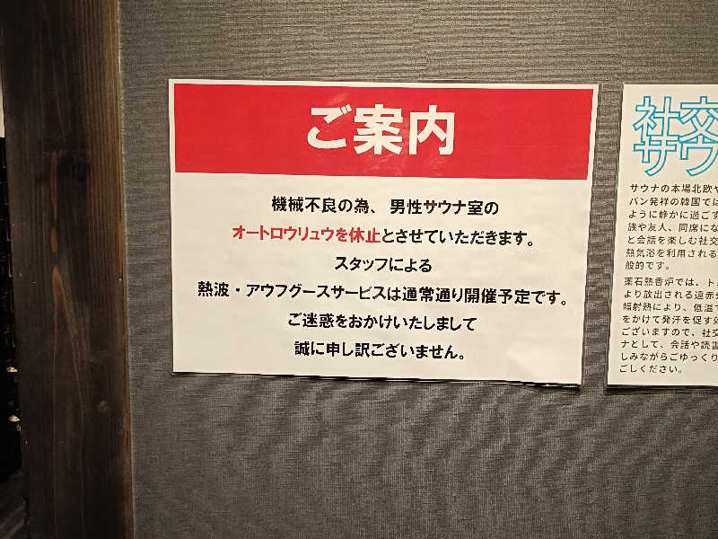 一言:めちゃくちゃ良かったわ、ちょうど200軒目の施設が、ここの施設でよかった。番台で水風呂の説明など、丁寧にしてもらいました!この時点で期待が膨らみました!