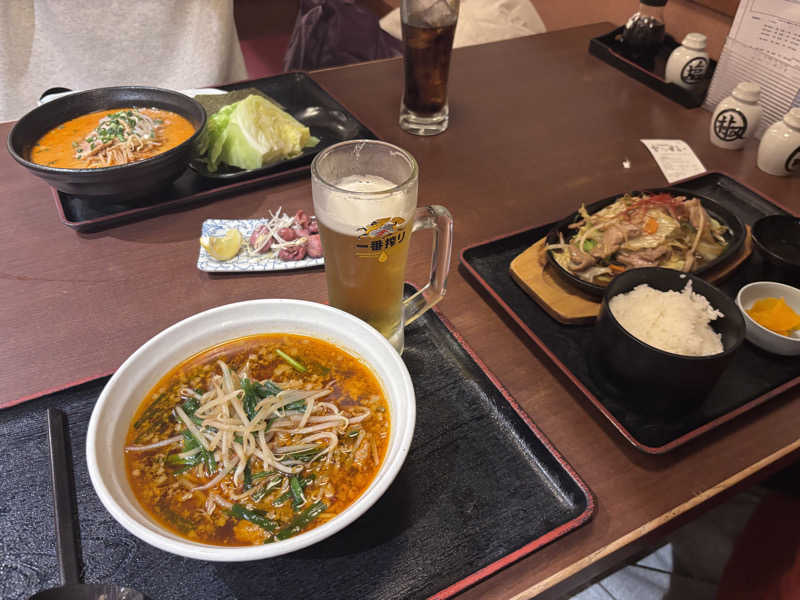 サウナ後は生ビールと台湾風ラーメンでキメました✨