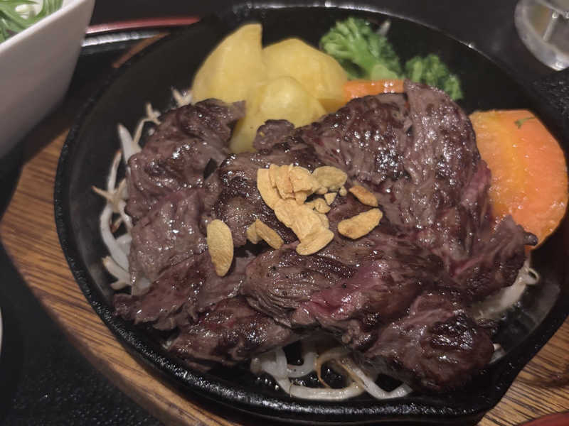 サウナはしっかり熱くて最高。ゆったり座れるくらいの混雑。室内の水風呂はそんなに温度は低くないけど、真冬だしまぁちょうど良いかんじ。冬は水風呂入らずに直接外気浴でもいいのかな??サウナは出入り口が2つあって、1つは直接露天風呂と繋がってるのも面白かった!サウナ飯はさがりステーキ🥩こちらもとても美味しかったです!近いのでまた行きます!次は平日に行こーっと。
