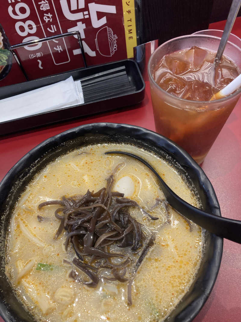 唇ヒリヒリ😆サウナのあとなのにまた汗かいちゃった💦山椒かな?スープめっちゃ美味しい😋麺ツルツル!
