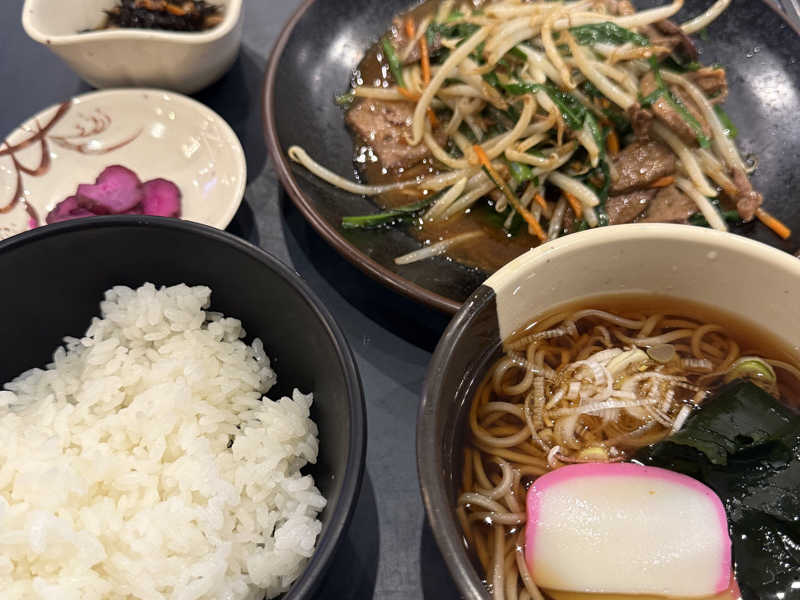 サウナ飯もニラレバ定食頼みました。