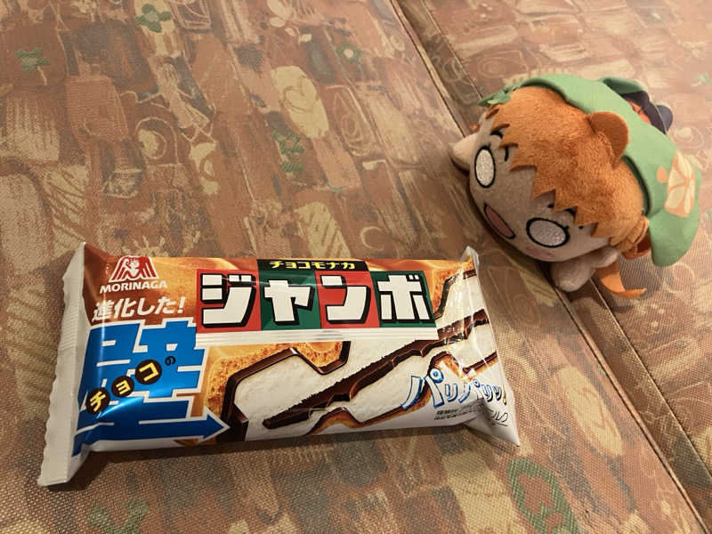 入浴後はアイス自販機でチョコモナカジャンボ食べました。