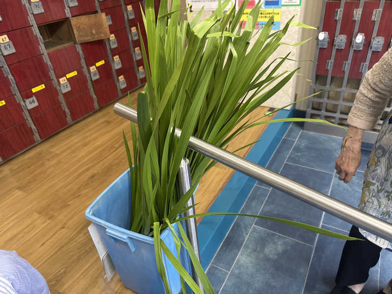街銭湯らしい内装のなか、遠くギリシャ🇬🇷の海岸風景が描かれています。この日は菖蒲湯で、お湯に浮いた束を嗅ぐとスキッとしたいい匂いがしました。お湯はしっかり熱め♨️です。浅いのと深いのの2パターンで茹でてもらえます。