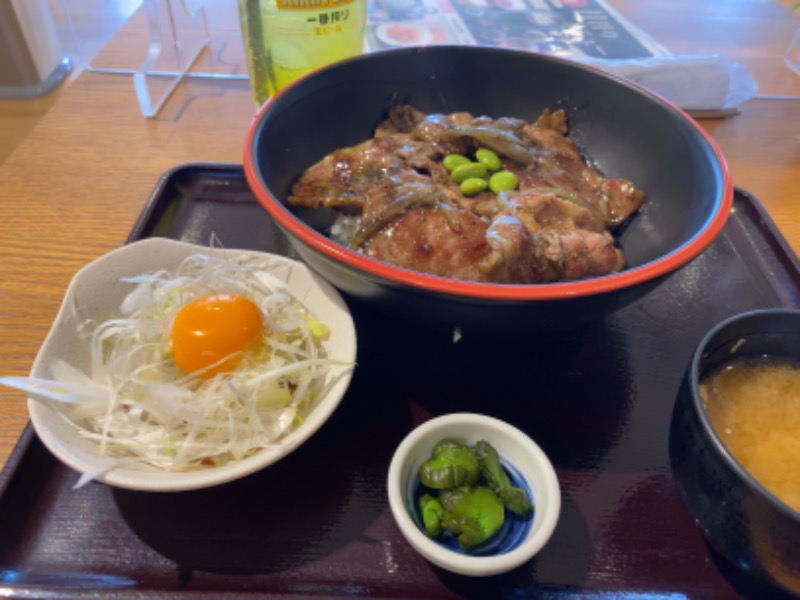 いつもこちらに来ると吉田うどん食べて帰るんだけど、タダで帰るのも申し訳ないので場内でサウナ飯セットのスタミナ豚丼をいただきました!
