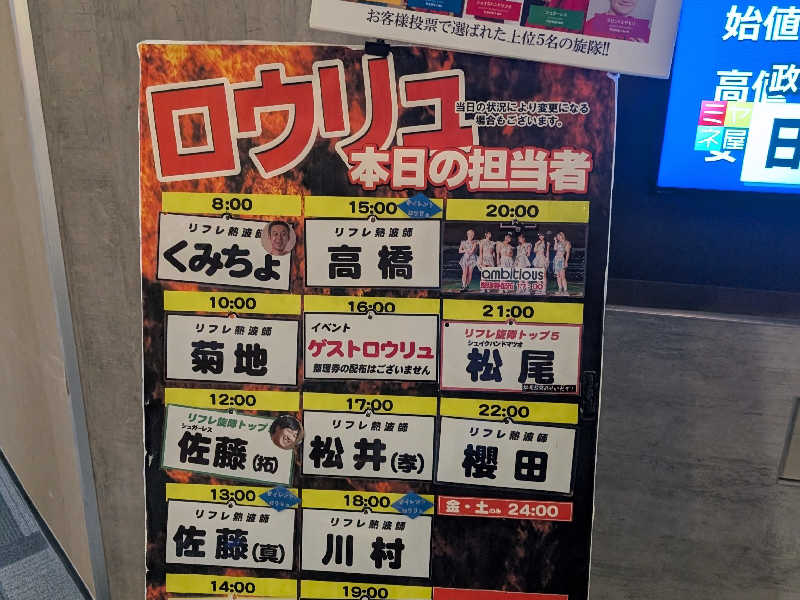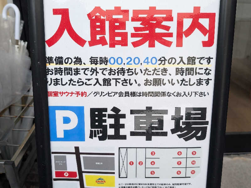 洗体、水通しをしてから3セット。平日昼間とあって、数人程度でゆっくりできました。今回はスタッフロウリュに加え、大きなうちわでも扇いでもらえて気持ちよかったです。