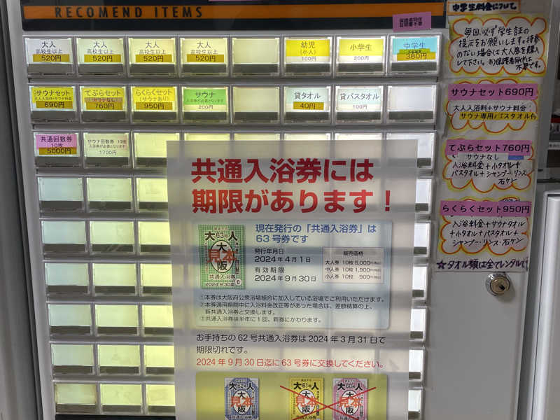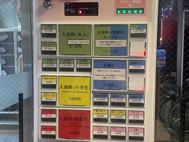 (サウナ込み510円、ドライヤー2台有3分20円)