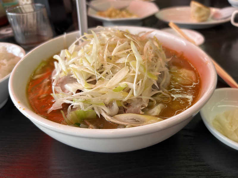 ネギ味噌チャーシュー麺にライスを頼んだけど、餃子も炒飯も食べたくて妻と次男にも付き合わせました😁