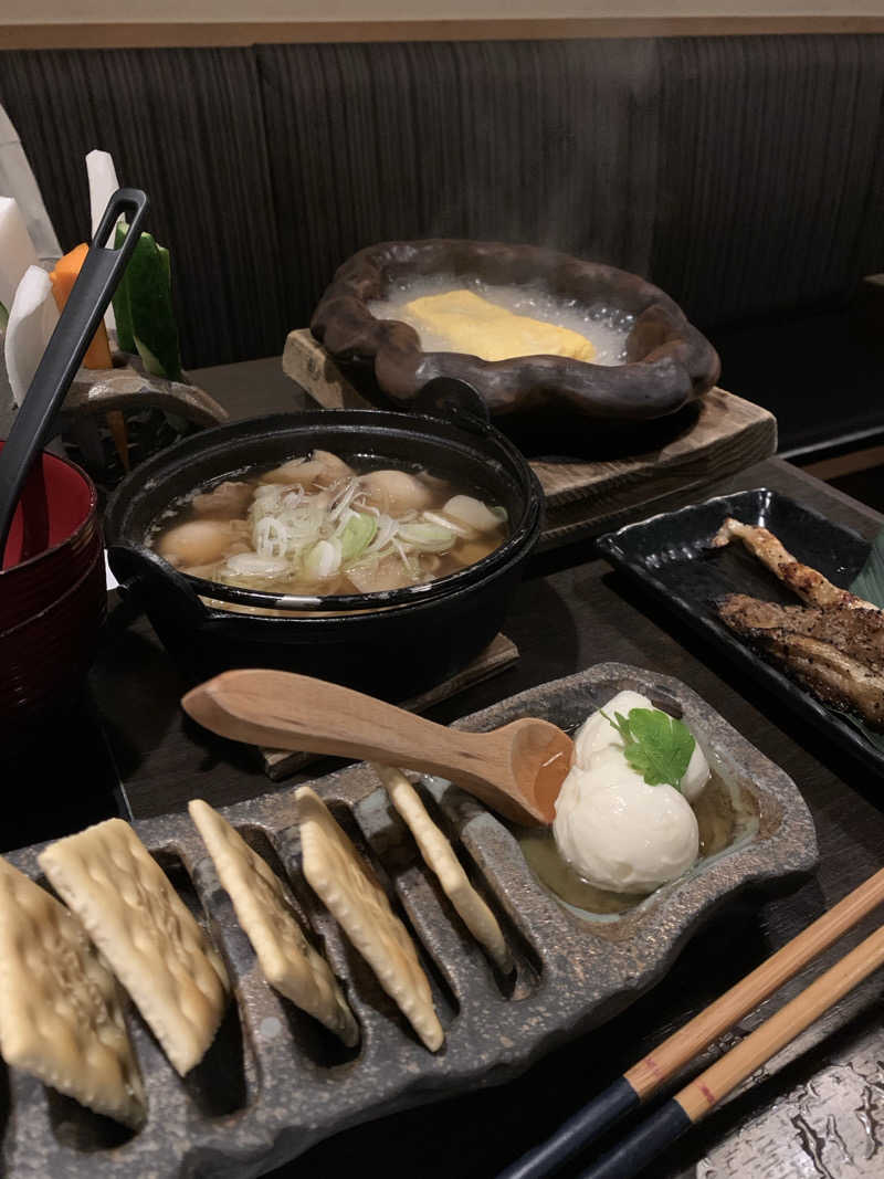 温泉は塩分含んだとろみがある湯。湯冷めしなくて心地良い。源泉は塩分が強いため、井戸水で加水していると書いてあった。