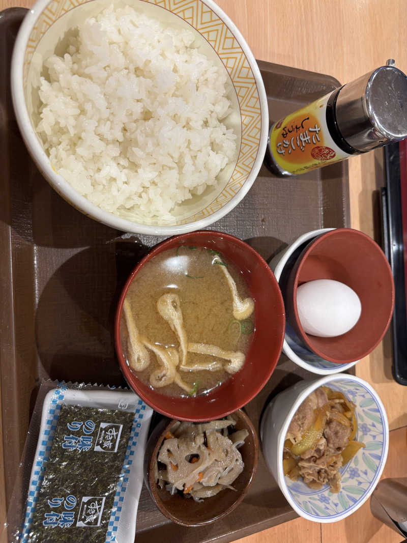 12/30夜のサ道は計画的にリアルで見るのは諦め、 早朝ジムでトレーニング後、5時半すぎにイン。 きっちり3セットと露天風呂で今年最後のサ活締め。 6時台に待ち発生してたが、良くも悪くもサウナの楽しみ方を知らない方が多いのか、ととのい椅子は空いていて、早朝のディープリラックス。 朝飯は、すき家の定食にて。 帰宅後サ道を見て、2025完。