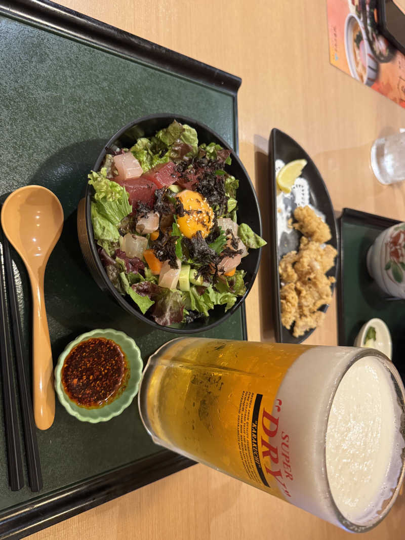 食事も飲み会も館内でできて、1リットルの生ビール飲んだって帰り気にしなくていいのがイイ。