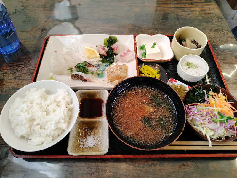 ボートレース場の横という立地で、露天からはレースも見えるそう。今日は非開催でしたが、目の前の山と橋、行き交う船を眺める景色がなかなか良い。