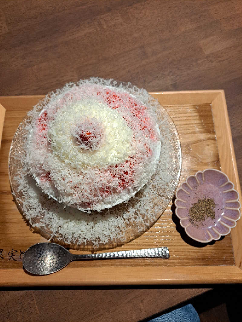 チーズがトローっとハムもタップリ! お腹いっぱいご馳走さまでした🥰 デザートにかき氷🍧