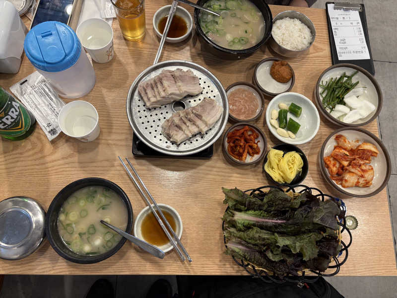 最初は館内着でチムジルバンを4つ入りました。60度から70度台を3つと8度を1つ入りました。しっかり蒸された後、8度の中は一気に冷やされました。