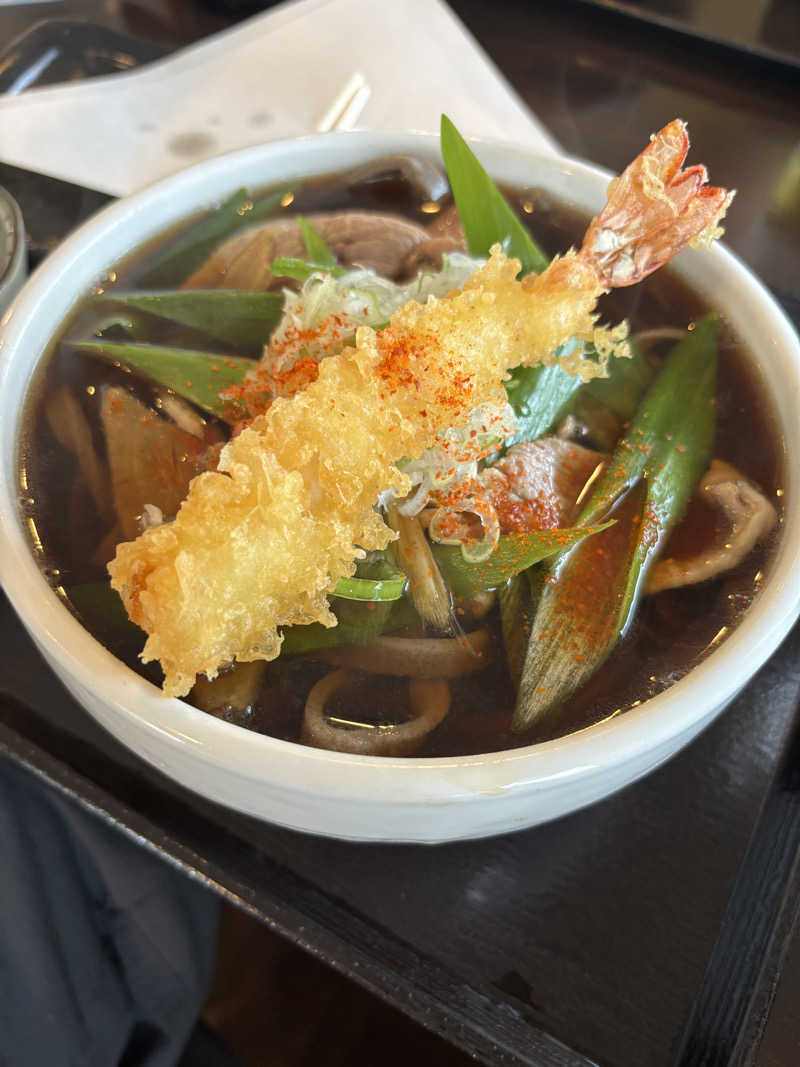 ジュワっとした海老天を鴨出汁のつゆに浸して…うめぇ笑