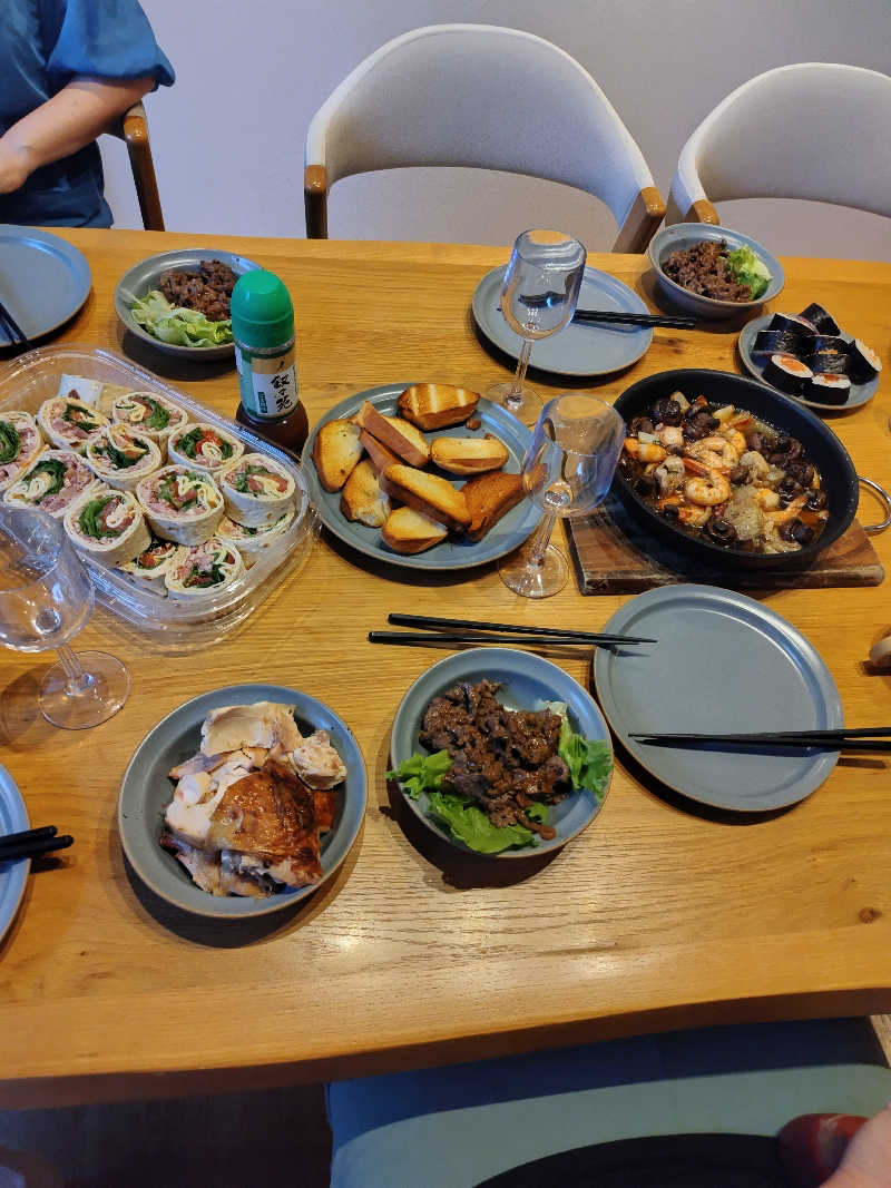 お疲れ様です。定番のハイローラ、ディナーロール、タンドリーチキン、プルコギ、アヒージョ、サーモンロール、叙々苑のドレッシング…すべてどストライクです😎画像ありがとうございます。