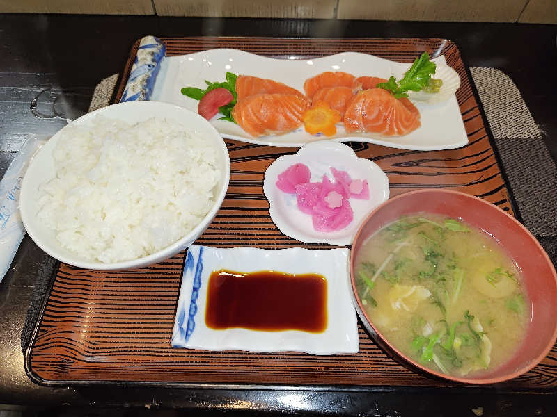 本日お仕事で全身ホコリまみれ‥ついでに寒く冷えたので‥仕事終ってから直行〜いつもパターンでサウナから掛け湯して〜高温湯から水風呂〜4セット〜 晩飯もといサ飯は〜サーモンの刺身が食べたい!で早々に〜
