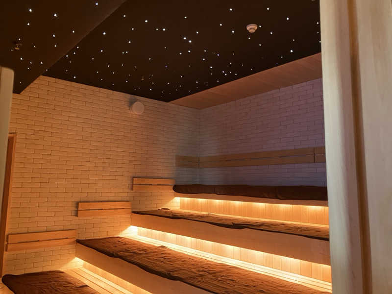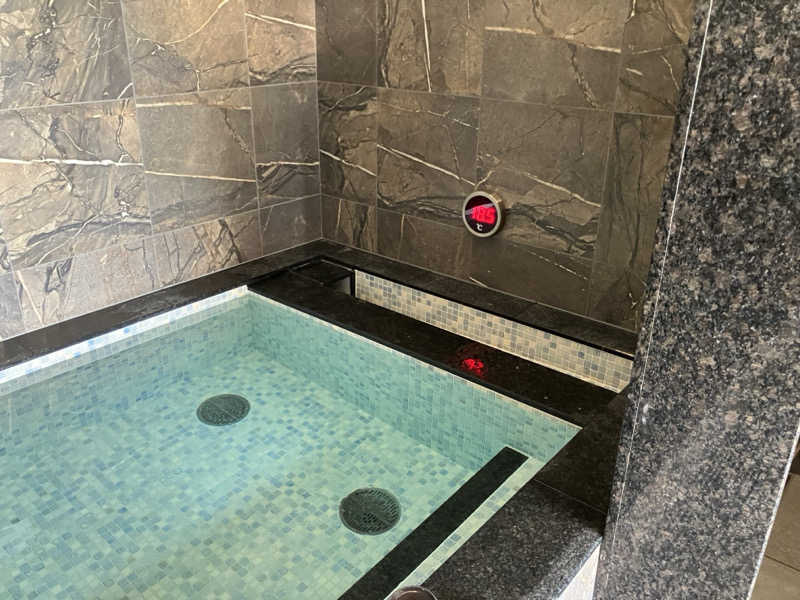 関空側のomoホテル、サウナはドライサウナ、8名位が定員、水風呂は4名定員でも深さはある。インフィニティチェアーは2台、浴室は超モダンな関西風銭湯って感じ、清潔感あり、半露天だが、外は見えない、外気のみ入ってくる。大きな壁スクリーンでomoホテル系列の映像流れてる。水風呂あとのぬる湯炭酸風呂最高。