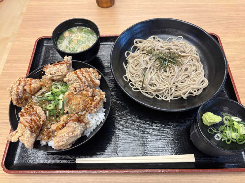 入浴+お食事セットを購入していたので、贅沢にも蕎麦とからあげ丼のコンビをいただいてきました。