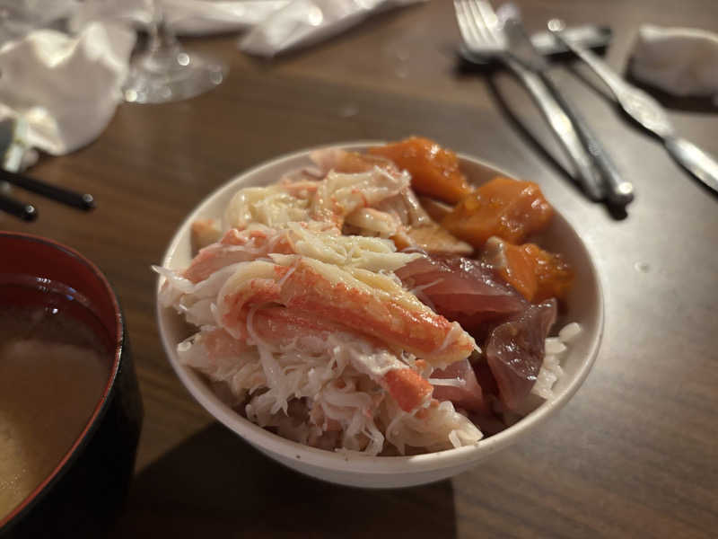 カニをホジホジしてお刺身と共にご飯にオン