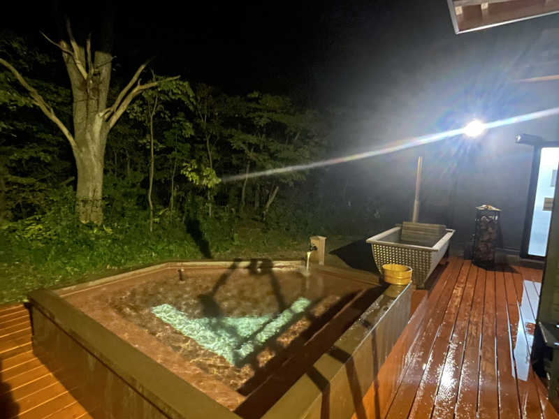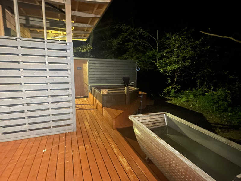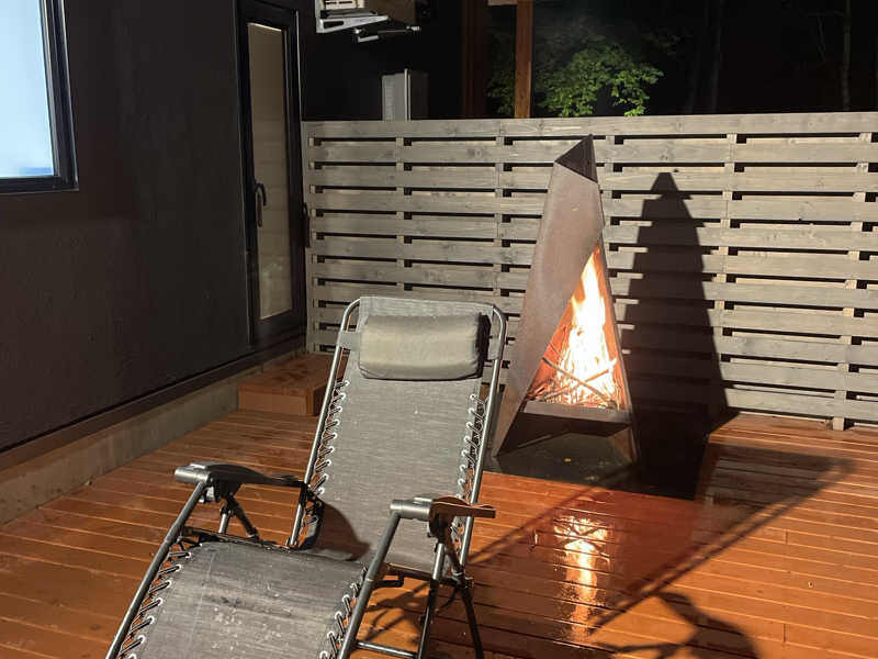 薪ストーブのサウナです。温度は100~110℃、水風呂の温度は9℃程の、本格的フィンランドサウナです。外気浴のスペースにはベンチ以外にもハンモック、インフェニテイチェアがあります。チェアの後ろに焚き火台があり、箱庭を見ながら背中で火の温もりを感じられる至福のひとときを感じられます…