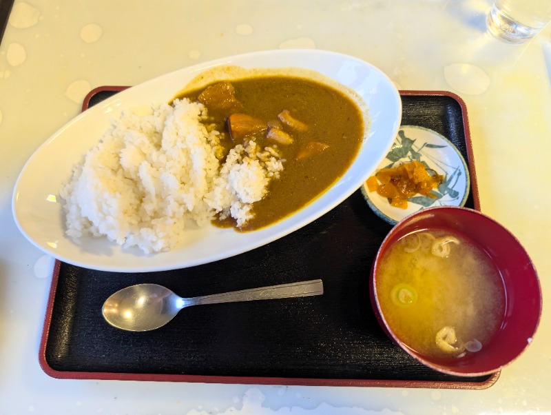 サウナ後はお食事処で朝定食Bのカレーと朝活スタンプカード満点特典のミニチャー細切れ丼をいただきました。朝から2食と欲張ってしまいましたが、カレーは飲み物なのでアッサリ食べられました!